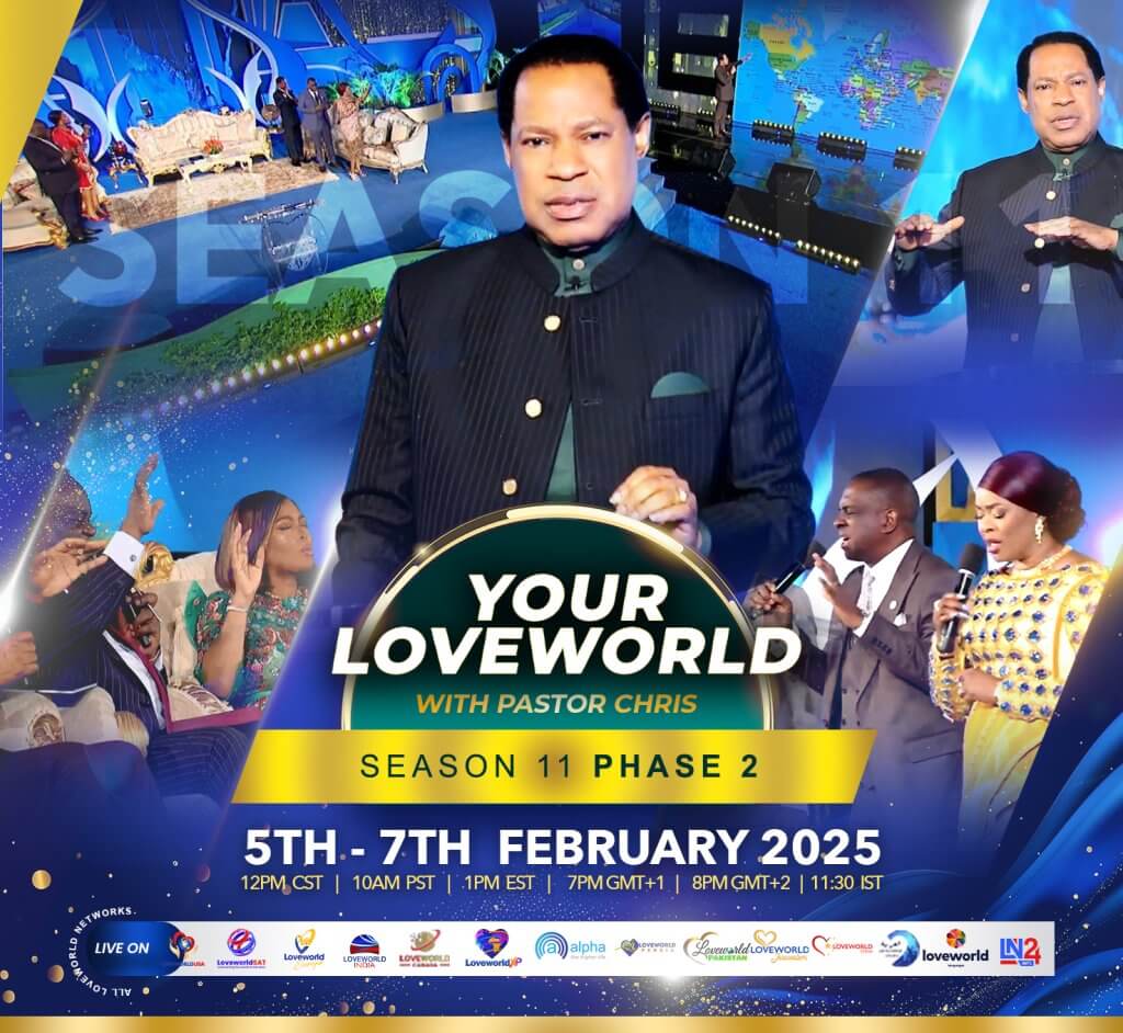 Share Get ready for three extraordinary days of revelation, prophecy, and divine insights as Pastor Chris leads us into greater depths of truth! 5th – 7th February 2025 AT 8PM GMT+2 Watch 𝗟𝗜𝗩𝗘 on all Loveworldsat or online at www.loveworldsat.org/live-tvThis is more than just a program—it’s a divine visitation! Get ready to receive direction, clarity, and supernatural empowerment! SubtitleRelated PostsSome description text for this item