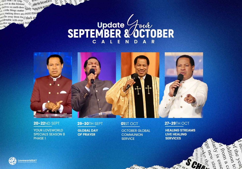 Take note of these special dates of live broadcasts by our man of God, Pastor Chris this September and October: