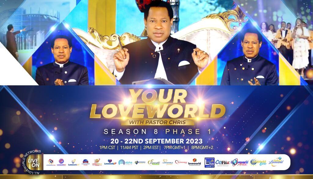 Your Loveworld Specials Season 8 Phase 1′ is live from Wednesday 20th September to Friday 22nd of September 2023 at 8pm GMT+2. Spread the good news and participate live daily on www.loveworldsat.org/live-tv/.